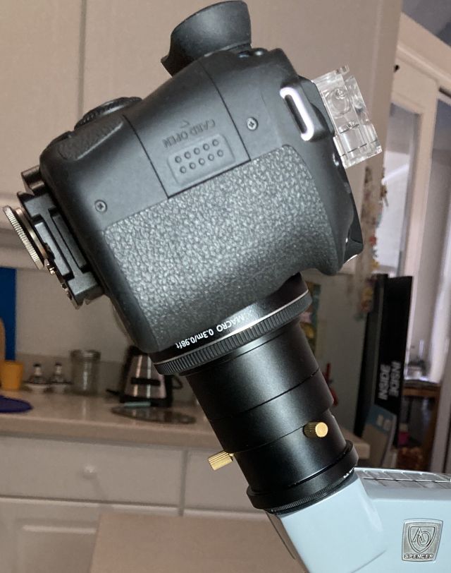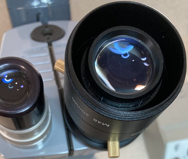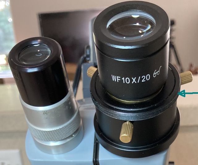 with a brass shim, this clamp secured to many objectives and eye tubes: