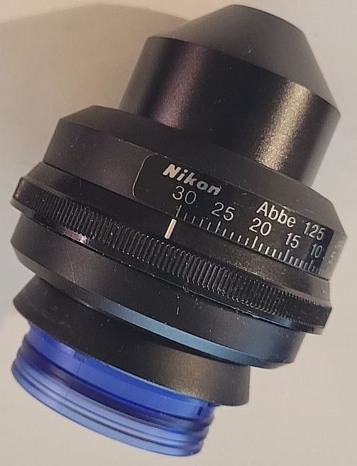 Phase Contrast-2 ELWD 0.3 hackThe intent was to repurpose this ELWD condenser as a darkfield turret.The turret arrived before the lens. Had I more carefully read that it was for inverted Diaphots only, I would have been better prepared for disappointment. The Phase Contrast-2 ELWD turret interferes with arched supports in -66 stage casting. It does however barely fit under an Optiphot-1 stage. The -66 condenser rack pinion cannot be removed from the substage casting without a special tool to engage 4 notches in the pinion bearing retainer. Unlike that condensor rack, the substage rack seemingly cannot be removed, even after removing the stop screw, by simply continuing to raise or lower the coarse focus.